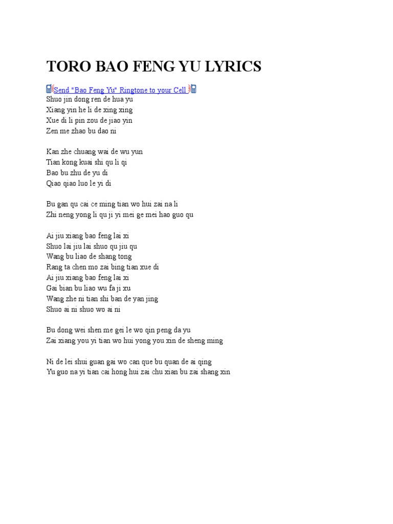 Toro Bao Feng Yu Lyrics Pdf China World Politics
